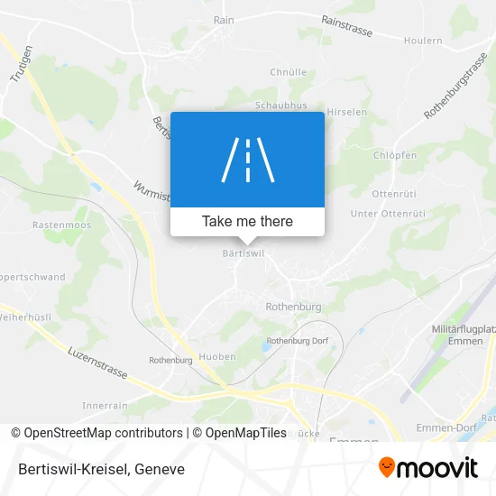 The nearest train station to Bertiswil-Kreisel in Geneve is Emmenbrücke Kapf. It’s a 21 min walk away.