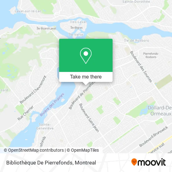 For information on prices of bus, costs and ride fares to Bibliothèque De Pierrefonds, please check the Moovit app.