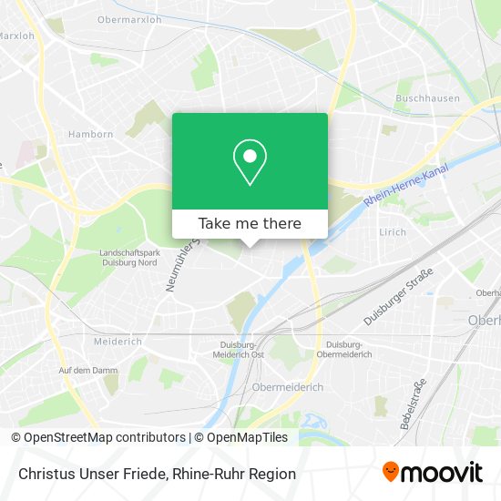 Wondering how to get to Christus Unser Friede in Duisburg? Moovit helps you find the best way to get to Christus Unser Friede with step-by-step directions from the nearest public transit station.