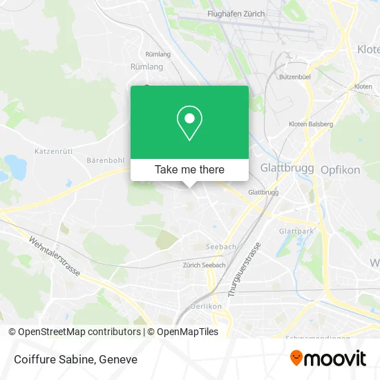 Looking for the nearest stop or station to Coiffure Sabine? Check out this list of stops closest to your destination: Zürich; Zürich; Zürich Seebach; Zürich; Glattbrugg; Glattpark; Opfikon; Rümlang.