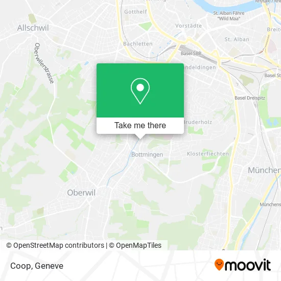 Looking for the nearest stop or station to Coop? Check out this list of stops closest to your destination: Oberwil Bl; Basel; Bottmingen; Binningen.
