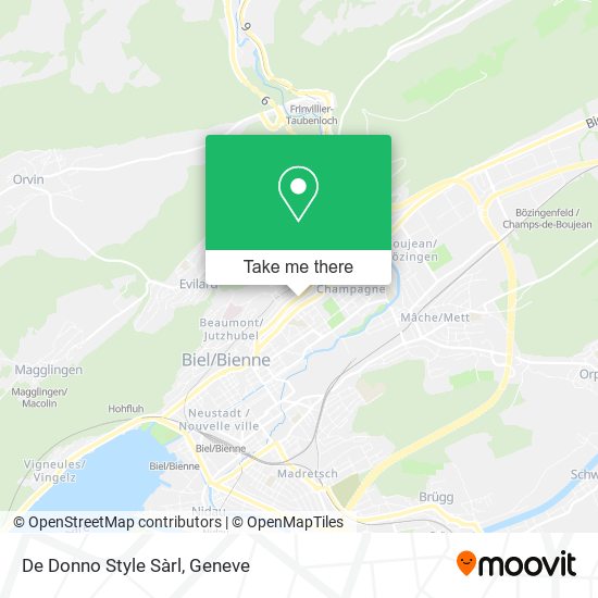 Looking for the nearest stop or station to De Donno Style Sàrl? Check out this list of stops closest to your destination: Biel/Bienne; Biel/Bienne; Biel/Bienne; Biel/Bienne; Biel/Bienne,Rte.De Reuchenette; Biel/Bienne; Biel/Bienne; Biel/Bienne; Biel/Bienne Leubringenb.(Funi); Biel/Bienne.