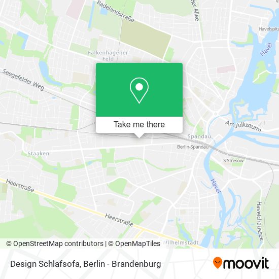 We make riding to Design Schlafsofa easy, which is why over 1.5 million users, including users in Spandau, trust Moovit as the best app for public transit. You don’t need to download an individual bus app or train app, Moovit is your all-in-one transit app that helps you find the best bus time or train time available.