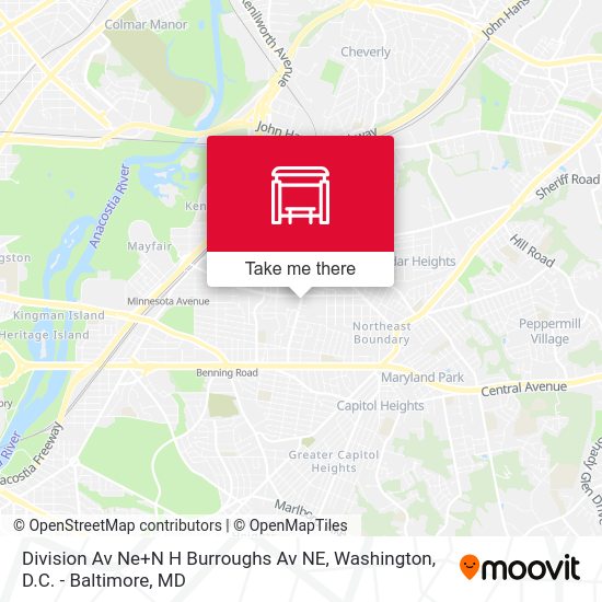 Public transit to Division Av Ne+N H Burroughs Av NE stop (ID: 1001062) in Washington