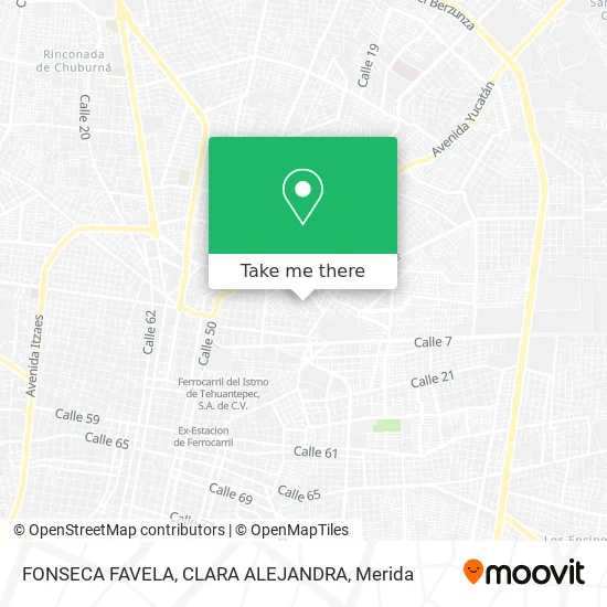 We make riding to FONSECA FAVELA, CLARA ALEJANDRA easy, which is why over 1.5 million users, including users in Mérida, trust Moovit as the best app for public transit. You don’t need to download an individual bus app or train app, Moovit is your all-in-one transit app that helps you find the best bus time or train time available.