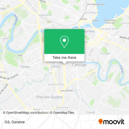 Looking for the nearest stop or station to G6? Check out this list of stops closest to your destination: Lancy-Pont-Rouge; Petit-Lancy; Petit-Lancy; Carouge Ge; Genève; Grand-Lancy; Lancy-Pont-Rouge.