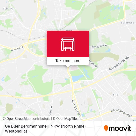 The nearest bus station to Ge Buer Bergmannsheil in Gelsenkirchen is Ge Buer Bergmannsheil. It’s a 2 min walk away.