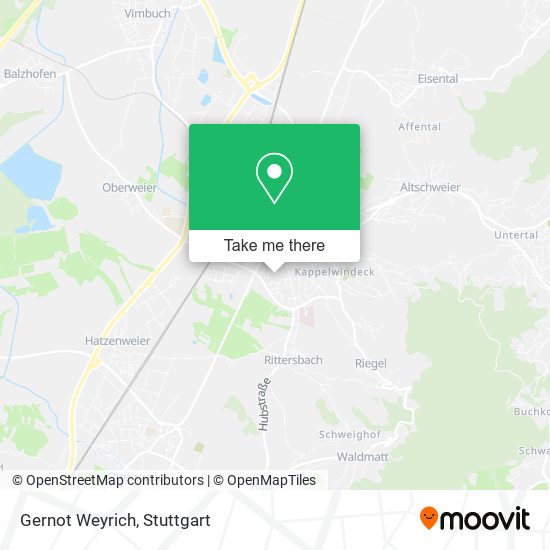 Looking for the nearest stop or station to Gernot Weyrich? Check out this list of stops closest to your destination: Bühl Tankstelle Jäger; Bühl R-Koch-Str/Bachschlossweg; Bühl Bühlertalstr/Hauptstr; Bühl A.-Stifter-Straße; Bühl Krankenhaus; Bühl (Baden).