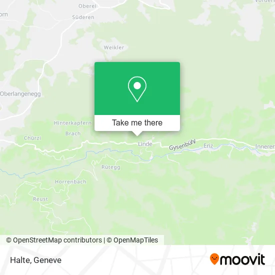 The nearest bus station to Halte in Geneve is Eriz, Linden. It’s a 12 min walk away.