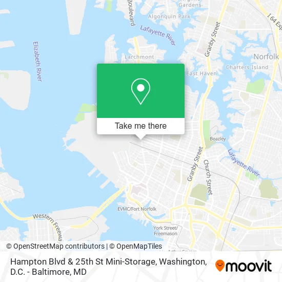 We make riding to Hampton Blvd & 25th St Mini-Storage easy, which is why over 1.5 million users, including users in Norfolk, trust Moovit as the best app for public transit. You don’t need to download an individual bus app or train app, Moovit is your all-in-one transit app that helps you find the best bus time or train time available.