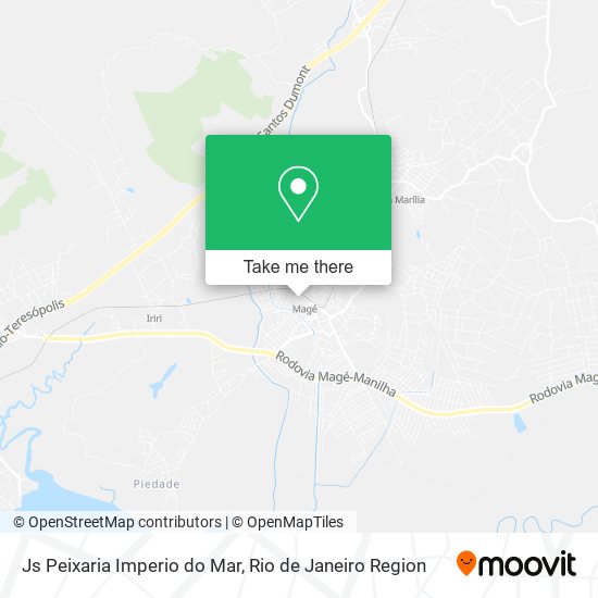 Wondering how to get to Js Peixaria Imperio do Mar in Magé? Moovit helps you find the best way to get to Js Peixaria Imperio do Mar with step-by-step directions from the nearest public transit station.
