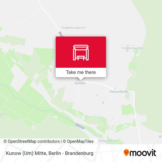 The nearest bus station to Kunow (Um) Mitte in Uckermark is Kunow (Um) Mitte. It’s a 1 min walk away.