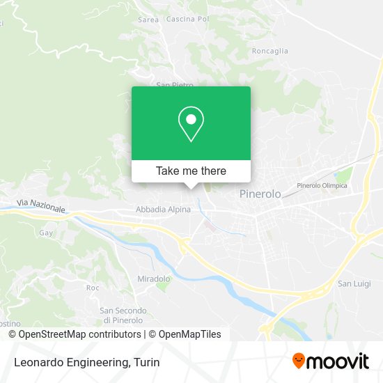 Wondering how to get to Leonardo Engineering in Pinerolo? Moovit helps you find the best way to get to Leonardo Engineering with step-by-step directions from the nearest public transit station.