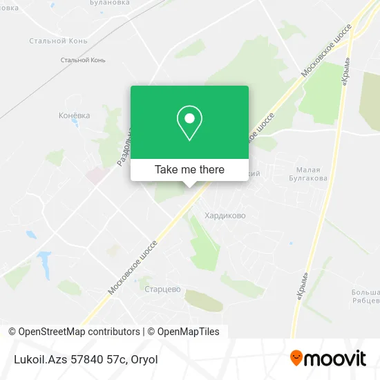 Wondering how to get to Lukoil.Azs 57840 57c in Орловский Район? Moovit helps you find the best way to get to Lukoil.Azs 57840 57c with step-by-step directions from the nearest public transit station.
