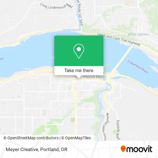 We make riding to Meyer Creative easy, which is why over 1.5 million users, including users in Hood River, trust Moovit as the best app for public transit. You don’t need to download an individual bus app or train app, Moovit is your all-in-one transit app that helps you find the best bus time or train time available.