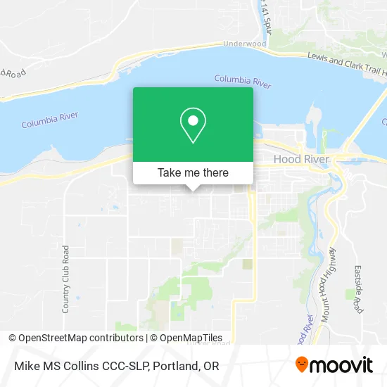 We make riding to Mike MS Collins CCC-SLP easy, which is why over 1.5 million users, including users in Hood River, trust Moovit as the best app for public transit. You don’t need to download an individual bus app or train app, Moovit is your all-in-one transit app that helps you find the best bus time or train time available.