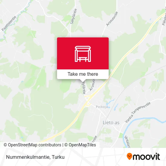 The nearest bus station to Nummenkulmantie in Lieto is Nummenkulmantie. It’s a 2 min walk away.