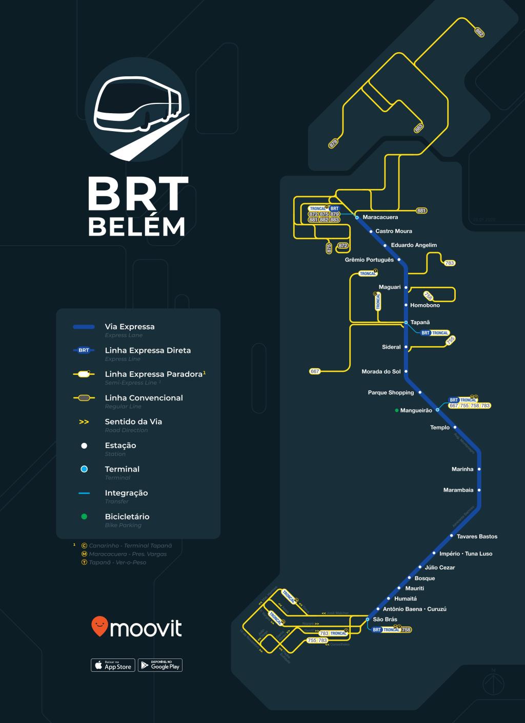 Moovit has an easy-to-download BRT System Map Map, that serves as your offline Belem Region bus map while traveling. This map can be saved in your phone and it’s easy to share with friends. To view the downloaded map, no internet connection is required. It’s the offline bus map in Belem Region that will take you where you need to go.
