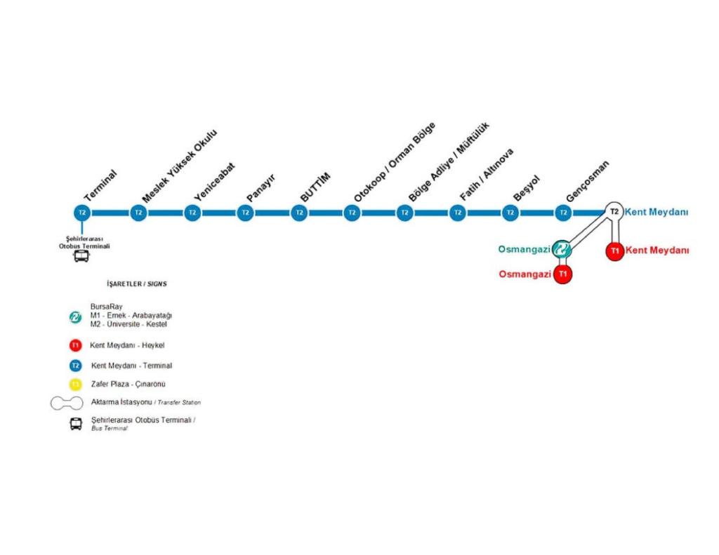 Moovit has an easy-to-download Bursa T2 Route Map Map, that serves as your offline Bursa map while traveling. This map can be saved in your phone and it’s easy to share with friends. To view the downloaded map, no internet connection is required. It’s the offline map in Bursa that will take you where you need to go.