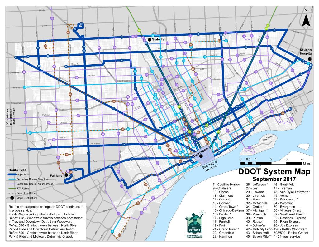 Moovit has an easy-to-download Detroit DDOT System Map, that serves as your offline Detroit - Ann Arbor, MI bus map while traveling. This map can be saved in your phone and it’s easy to share with friends. To view the downloaded map, no internet connection is required. It’s the offline bus map in Detroit - Ann Arbor, MI that will take you where you need to go.