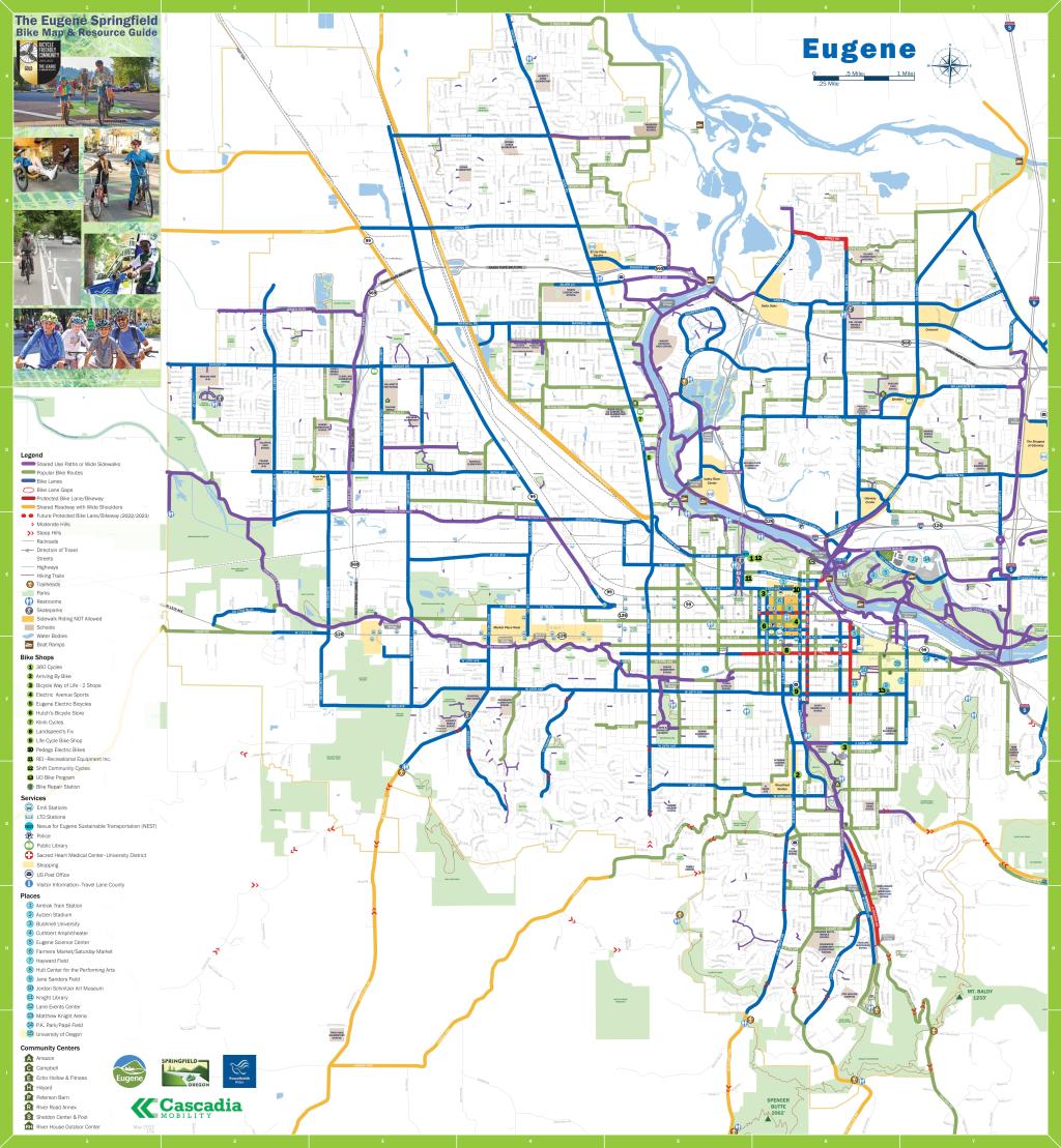 Moovit has an easy-to-download Eugene Bike Map Map, that serves as your offline Eugene map while traveling. This map can be saved in your phone and it’s easy to share with friends. To view the downloaded map, no internet connection is required. It’s the offline map in Eugene that will take you where you need to go.