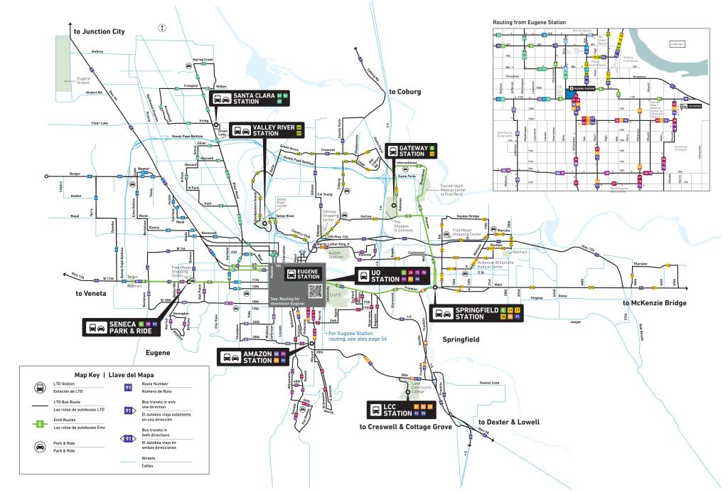 Moovit has an easy-to-download Eugene Routes Updated Map Map, that serves as your offline Eugene bus map while traveling. This map can be saved in your phone and it’s easy to share with friends. To view the downloaded map, no internet connection is required. It’s the offline bus map in Eugene that will take you where you need to go.