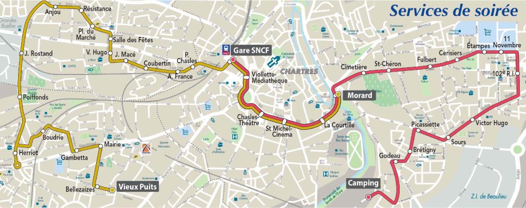 Moovit has an easy-to-download Evening bus network (Friday and Saturday) Map, that serves as your offline Chartres bus map while traveling. This map can be saved in your phone and it’s easy to share with friends. To view the downloaded map, no internet connection is required. It’s the offline bus map in Chartres that will take you where you need to go.