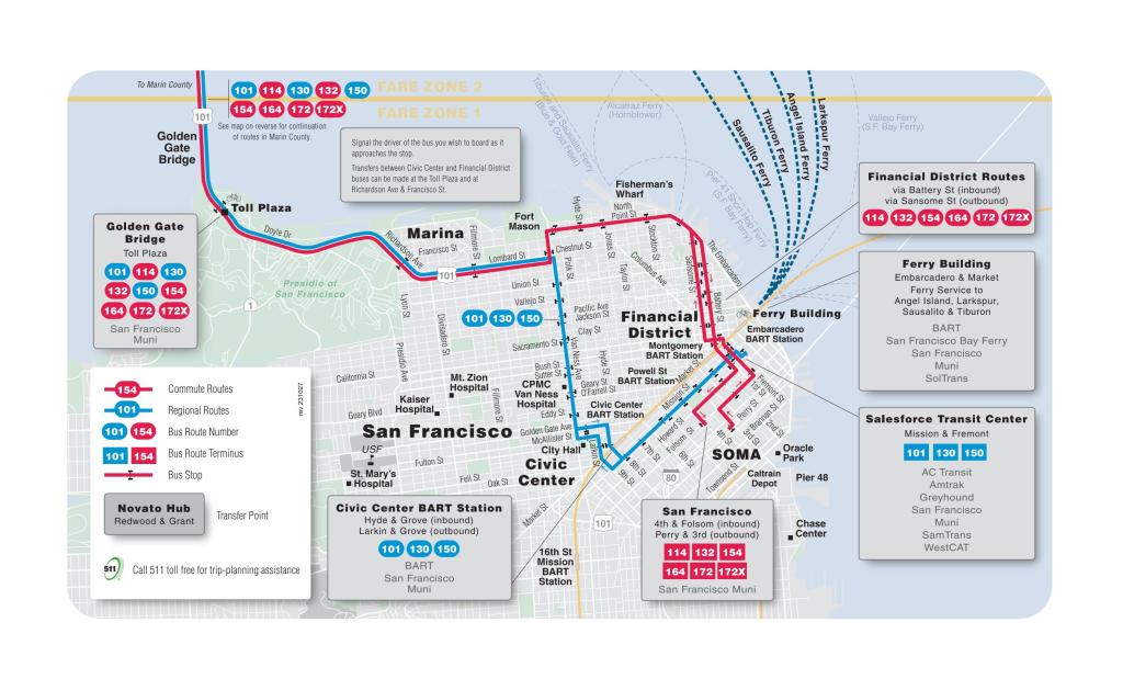 Moovit has an easy-to-download Golden Gate Transit SF Map, that serves as your offline San Francisco - San Jose, CA bus map while traveling. This map can be saved in your phone and it’s easy to share with friends. To view the downloaded map, no internet connection is required. It’s the offline bus map in San Francisco - San Jose, CA that will take you where you need to go.