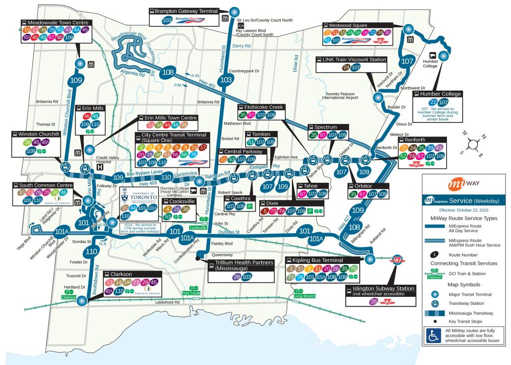 Moovit has an easy-to-download MiWay Express Weekday Map, that serves as your offline Toronto bus map while traveling. This map can be saved in your phone and it’s easy to share with friends. To view the downloaded map, no internet connection is required. It’s the offline bus map in Toronto that will take you where you need to go.
