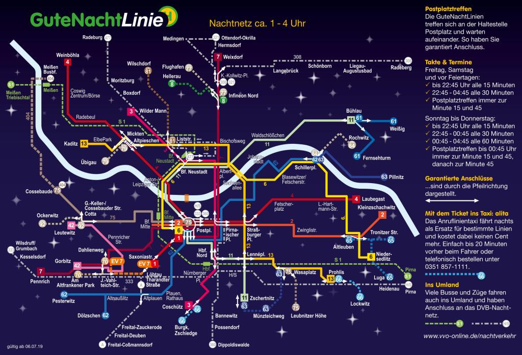 Moovit has an easy-to-download Night line network Dresden map, that serves as your offline Dresden light rail, gondola, ferry, bus or train map while traveling. This map can be saved in your phone and it’s easy to share with friends. To view the downloaded map, no internet connection is required. It’s the offline light rail, gondola, ferry, bus or train map in Dresden that will take you where you need to go.