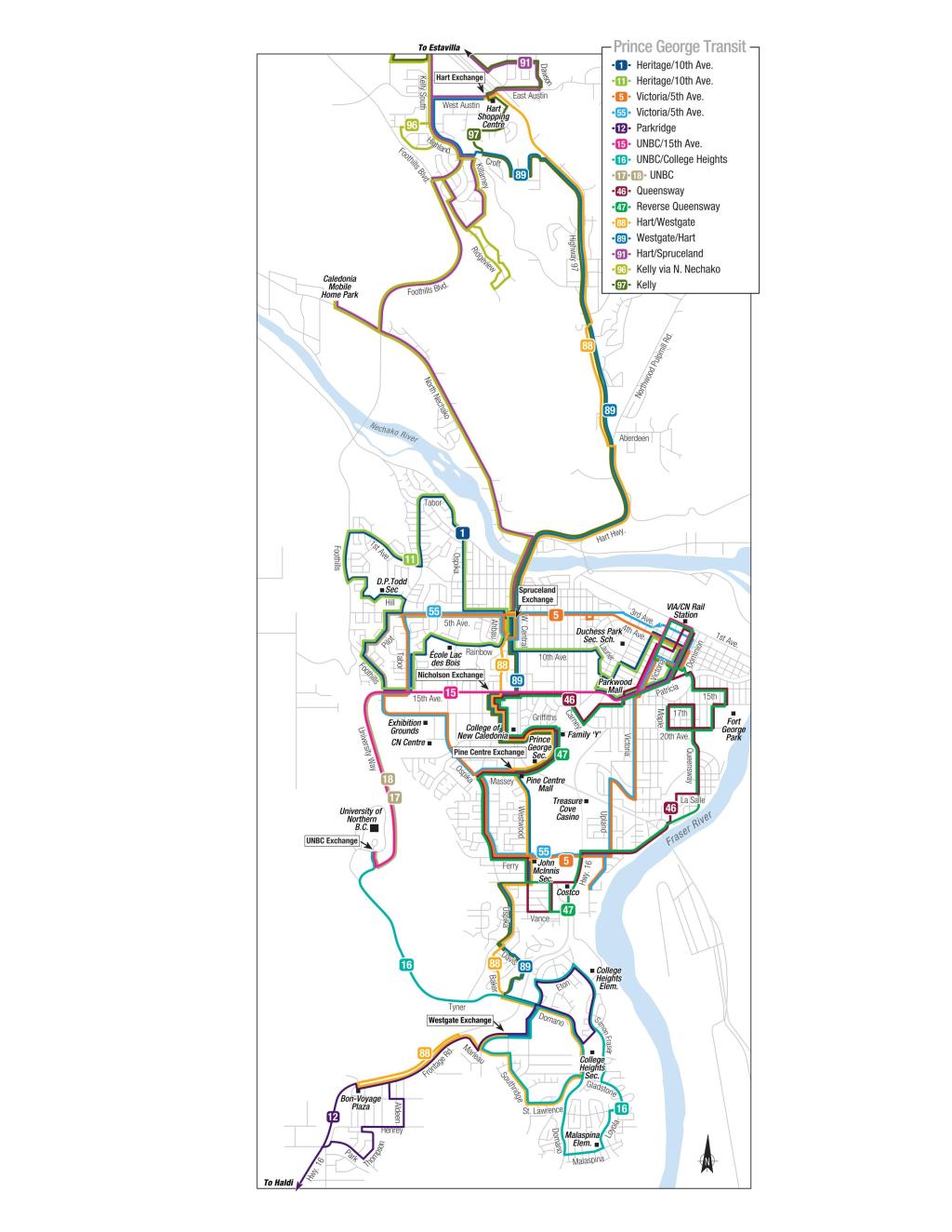 Prince George lines and routes Offline Map (PDF)