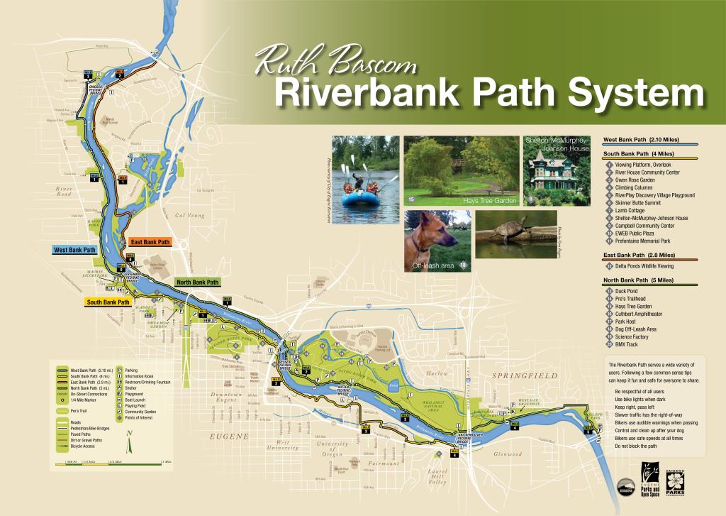 Moovit has an easy-to-download Ruth Bascom Riverbank Path Map, that serves as your offline Eugene map while traveling. This map can be saved in your phone and it’s easy to share with friends. To view the downloaded map, no internet connection is required. It’s the offline map in Eugene that will take you where you need to go.