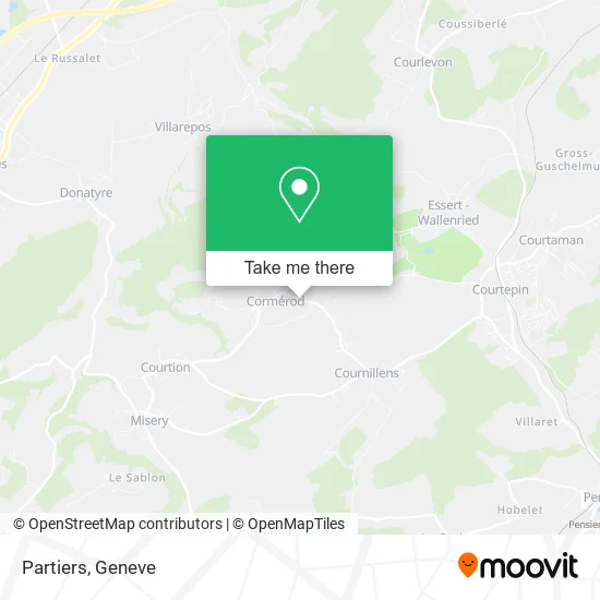 The nearest bus station to Partiers in Geneve is Cormérod, Partiers. It’s a 1 min walk away.