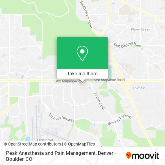 Wondering how to get to Peak Anesthesia and Pain Management in Centennial? Moovit helps you find the best way to get to Peak Anesthesia and Pain Management with step-by-step directions from the nearest public transit station.