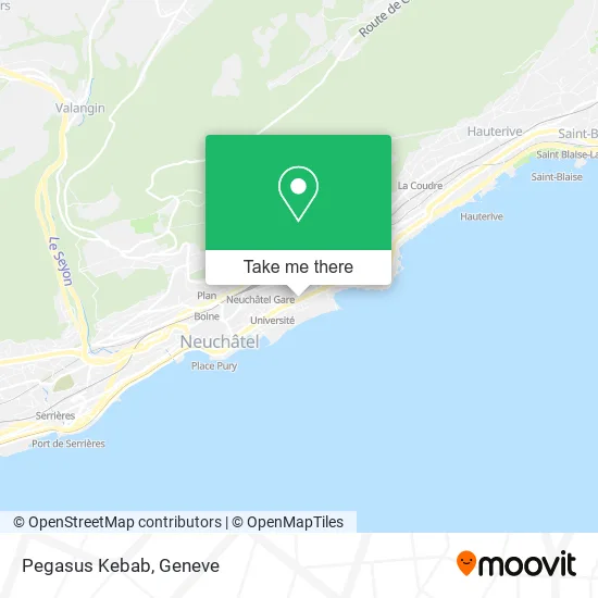 Looking for the nearest stop or station to Pegasus Kebab? Check out this list of stops closest to your destination: Neuchâtel-Université (Funi); Neuchâtel; Neuchâtel; Neuchâtel; Neuchâtel; Neuchâtel (Bateau); Neuchâtel; Neuchâtel.
