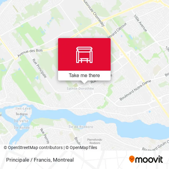 The nearest bus station to Principale / Francis in Laval is Principale / Laurin. It’s a 2 min walk away.