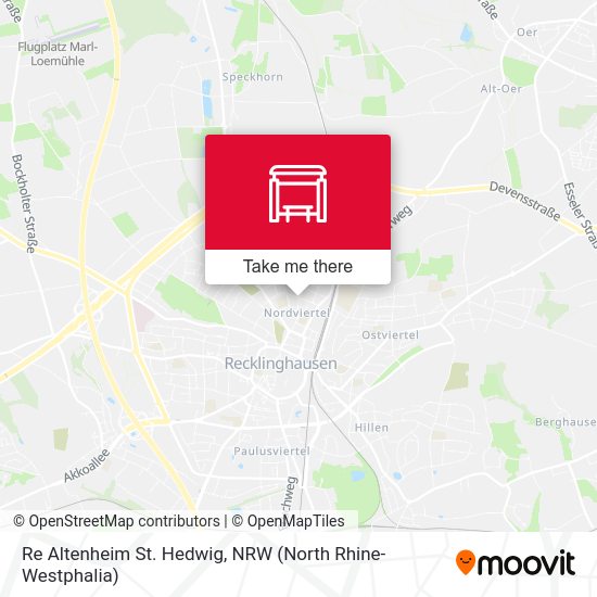 The nearest bus station to Re Altenheim St. Hedwig in Recklinghausen is Re Altenheim St. Hedwig. It’s a 1 min walk away.