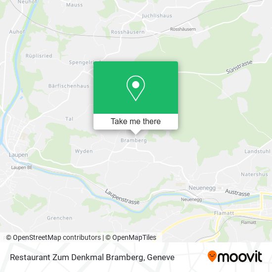 We make riding to Restaurant Zum Denkmal Bramberg easy, which is why over 1.5 million users, including users in Geneve, trust Moovit as the best app for public transit. You don’t need to download an individual bus app or train app, Moovit is your all-in-one transit app that helps you find the best bus time or train time available.