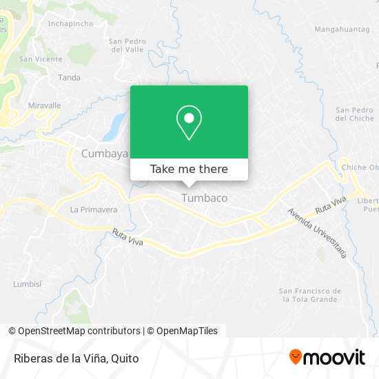 Wondering how to get to Riberas de la Viña in Tumbaco? Moovit helps you find the best way to get to Riberas de la Viña with step-by-step directions from the nearest public transit station.