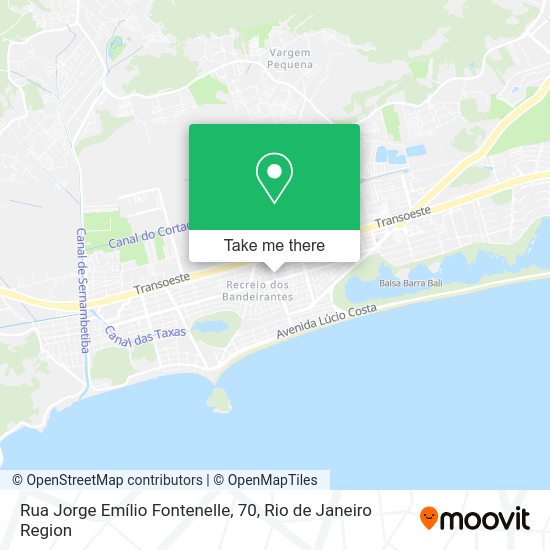Wondering how to get to Rua Jorge Emílio Fontenelle, 70 in Recreio Dos Bandeirantes? Moovit helps you find the best way to get to Rua Jorge Emílio Fontenelle, 70 with step-by-step directions from the nearest public transit station.