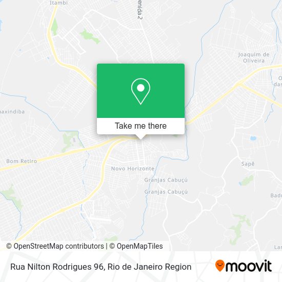 Wondering how to get to Rua Nilton Rodrigues 96 in Itaboraí? Moovit helps you find the best way to get to Rua Nilton Rodrigues 96 with step-by-step directions from the nearest public transit station.