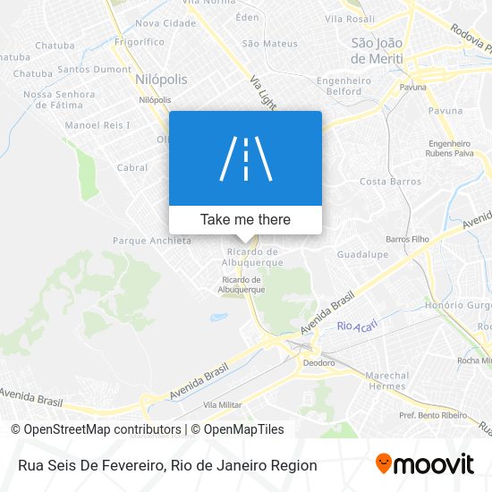 Looking for the nearest stop or station to Rua Seis De Fevereiro? Check out this list of closest stops available to your destination: Rua Capitão Mário Barbedo; FAETEC | Ricardo De Albuquerque; Estação Ricardo De Albuquerque; Ponto Final - Ricardo (N.S. Penha); Rua Japoara; Avenida Nazaré; Vila Militar; Ricardo De Albuquerque; Deodoro.