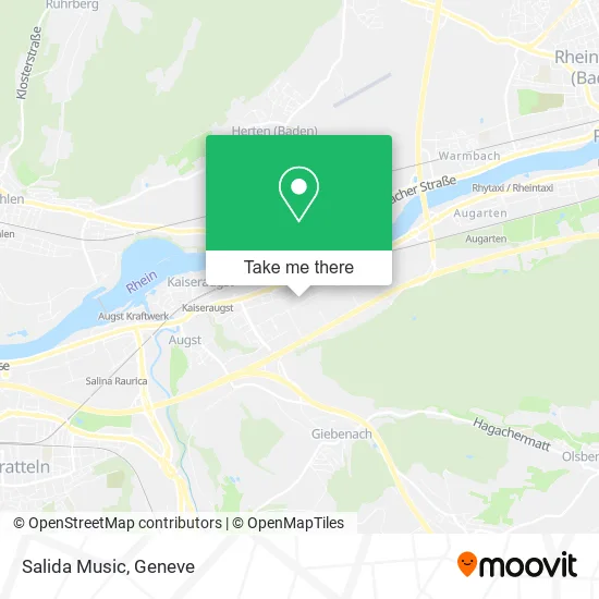 Looking for the nearest stop or station to Salida Music? Check out this list of stops closest to your destination: Kaiseraugst; Kaiseraugst; Kaiseraugst; Kaiseraugst Schifflände; Herten (Baden).