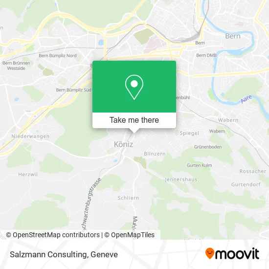 Looking for the nearest stop or station to Salzmann Consulting? Check out this list of stops closest to your destination: Köniz; Liebefeld; Köniz; Köniz; Bern WeissenbĂ¼hl; Spiegel; Bern; Gurten Kulm.
