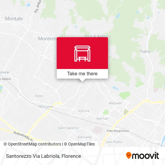 The nearest bus station to Santorezzo Via Labriola in Montemurlo is Santorezzo Via Labriola. It’s a 1 min walk away.