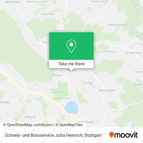 We make riding to Schreib- und Büroservice Jutta Heinrich easy, which is why over 1.5 million users, including users in Verwaltungsgemeinschaft Überlingen, trust Moovit as the best app for public transit. You don’t need to download an individual bus app or train app, Moovit is your all-in-one transit app that helps you find the best bus time or train time available.