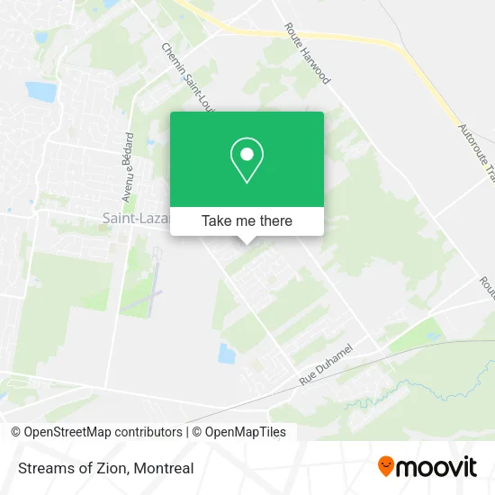 The nearest bus station to Streams of Zion in Saint-Lazare is Champêtre / Des Semences. It’s a 1 min walk away.
