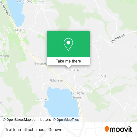 Looking for the nearest stop or station to Trottenmattschulhaus? Check out this list of stops closest to your destination: Hitzkirch; Hitzkirch; Hitzkirch; Hitzkirch; Mosen (See).