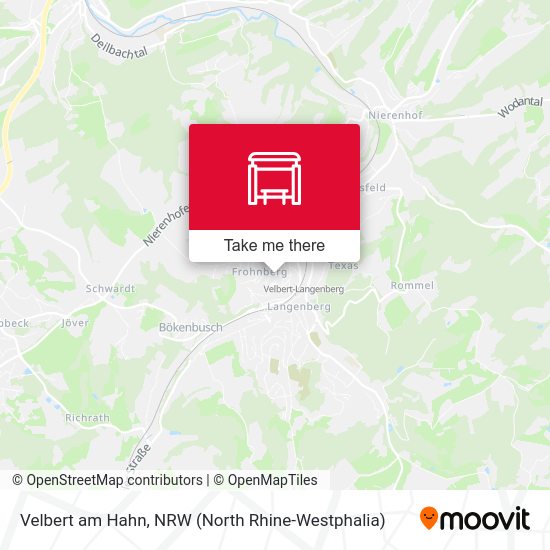 The nearest bus stations to Velbert am Hahn are Velbert, Voßnackerstraße and Velbert am Hahn. The closest one is a 3 min walk away.