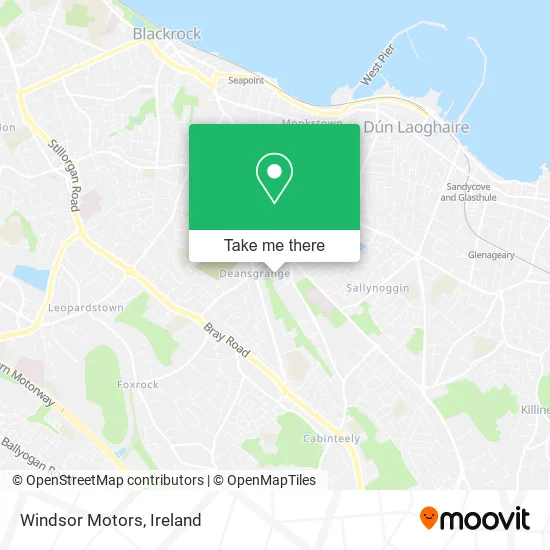 Looking for the nearest stop or station to Windsor Motors? Check out this list of stops closest to your destination: Kill Lane; Deansgrange Road; Clonkeen Road; Abbey Road; Seapoint; Dun Laoghaire (Mallin).